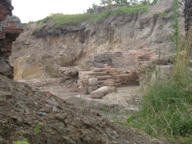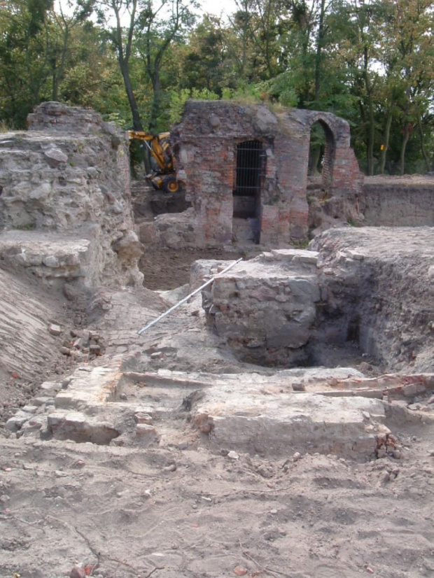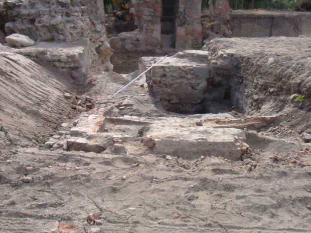 Jestem tylko obserwatorem wykopalisk. Widać jednak, że nie było piwnic po stronie północnej. Pierwotne skrzydło zachodnie runęło w 1388 r. W następnych wiekach skarpa wiślana dalej się osuwała. Zachowały się tylko szczątki tego skrzydła. Ze względów technicznych nie odsłonięto w tym roku przejazdu bramnego. Rozkopanie przejazdu zablokowałoby dojazd na teren wykopalisk. Może to będzie dokończone w przyszłym roku? Istotny był również czynnik możliwości zakonserwowania znacznej ilości reliktów murów. W tym roku mury zostaną zabezpieczone a konserwacja i ewentualne rekonstrukcje fragmentów ścian w przyszłym roku.