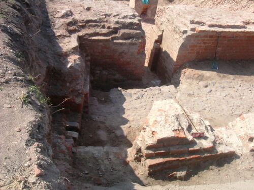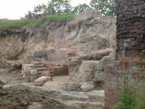 Badania archeologiczne jeszcze sie nie skończyły, ale to co odkryto jest imponujące. Mury skrzydła południowego mają 4-5 m grubości.