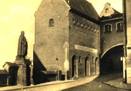 Fot. 11. Brama Zamkowa przedzamcza. Widok od strony południowej. Stan przed przebudową w 1910 r. W 1910 r. w przylegającym do bramy gdanisku wykonano potrójne drzwi.