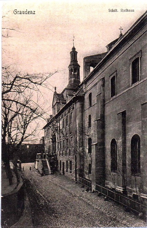 98 Wielki mistrz Konrad von Jungingen potwierdził w 1401 r. uprawnienia sądownicze kościoła św. Jerzego dla grudziądzan . W ratuszu grudziądzkim nie było sali sądowej, ani aresztu. Sądy odbywały się około 300 m na południe od murów miejskich, w okolicy obecnych ulic Rybackiej i Marcinkowskiego. Zapewne jest to kontynuacja lokalizacji sądu z czasów przedkolacyjnych miasta. Lokalizacja sądu koresponduje z hipotezą ks. W. Łegi o kościele św. Jerzego, jako pierwszym kościele parafialnym dla grudziądzan .