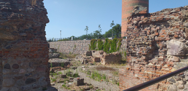 21. Obecny widok na ruiny skrzydła południowego, jego część wschodnią. Nawet pobieżna obserwacja pokazuje, że nie jest idealnie, jak to wygląda na tablicy informacyjnej.
