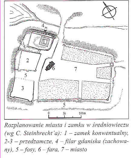 plan zamku i miasta (źr:Zamki Krzyżackie w Polsce,str.136)