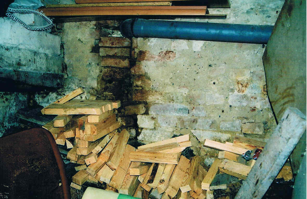 jedna z piwnic, na drewnem widać że część z nich jeszcze znacznie grubsza od pozostałych
