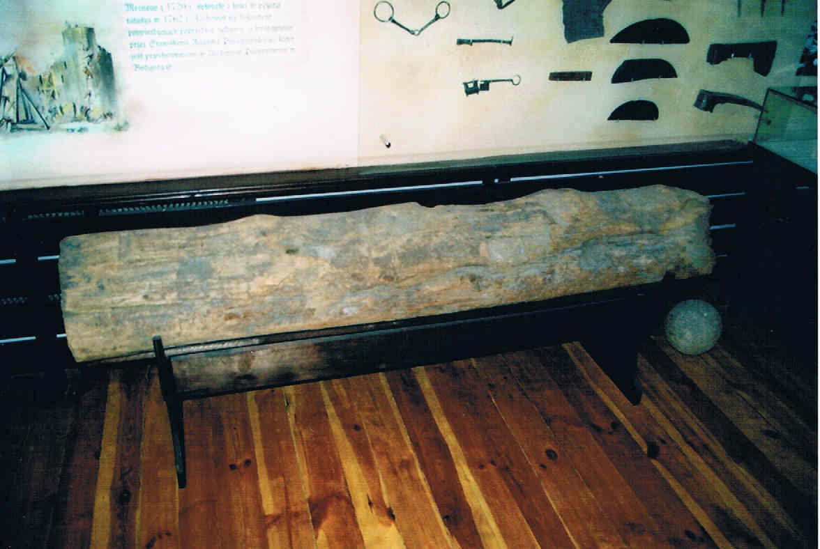 część zamkowej "kanalizacji". fragment drewna z wydrążonym otworem