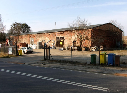 Oznaczona strzałką średniowieczna stodoła się zachowała. Jest po lewej stronie szosy, jadąc od strony Grudziądza.