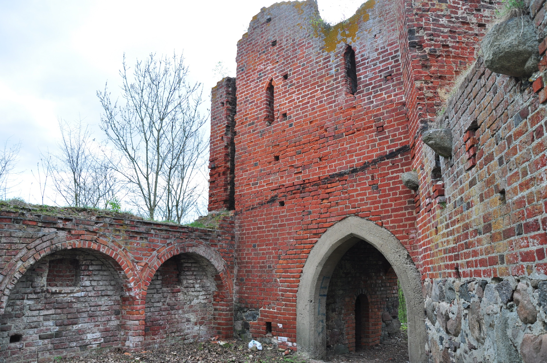 Ostry łuk portalu od strony wschodniej został wykonany z betonu około 1968 r.