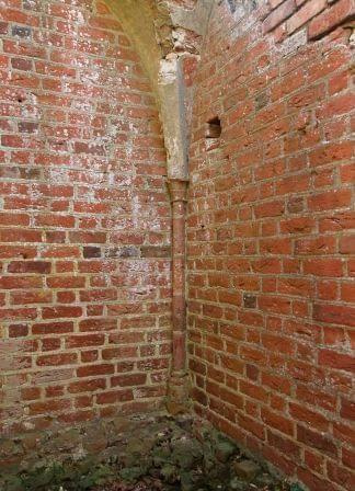 Wczesnogotyckie służki z kielichowymi kapitelami w pomieszczeniu na piętrze wieży dostępnym poprzez drabinkę wykonaną z miejscowej leszczyny.