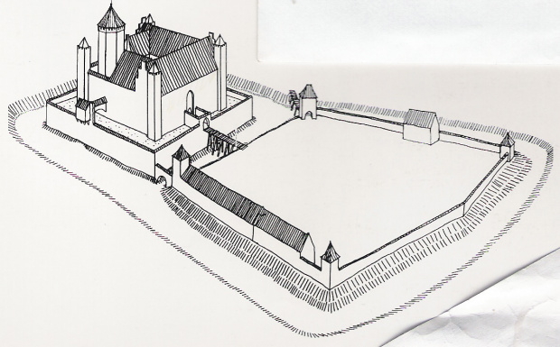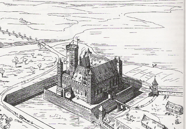 rekonstrukcja zamku z XIV wieku wg C.Steinbrechta 1888 z uzupełnieniami J.Salma