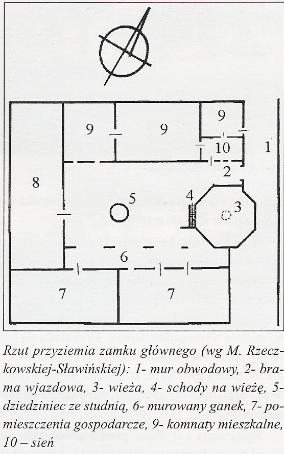 plan zamku wg M.Rzeczkowskiej-Sławińskiej 1965 i J.Frycza 1978