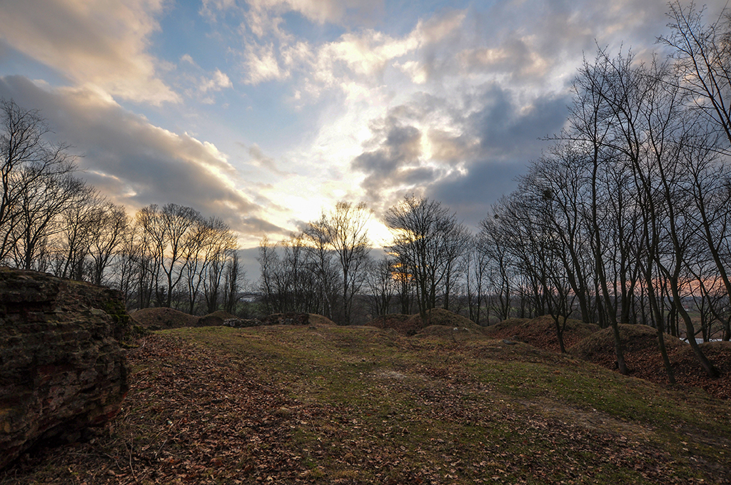 wzgórze zamkowe zostało pozbawione wielkich drzew w miejscu gdzie są ruiny , z tego co słyszałam mają zostać tu przeprowadzone badania archeologiczne