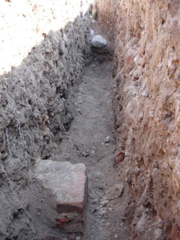 Na dziś sytuacja wygląda tak, że wodociąg położono bez naruszania odkrytych fundamentów - po prostu ułożono na nich rury i wykop zasypano.