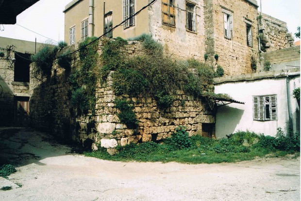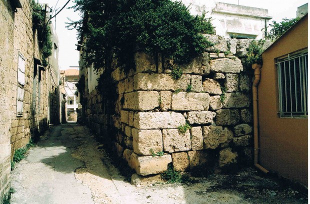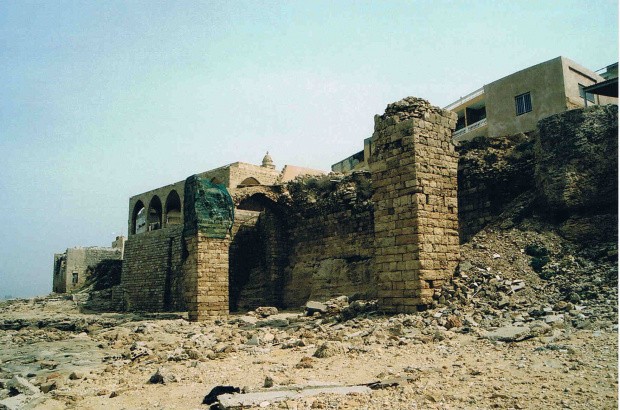 relikty zamku nad wybrzeżem wraz z widoczną częścią muru fenickiego