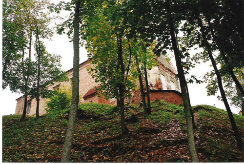 W XIV wieku Krzyżacy wybudowali murowaną warownię, w wyniku walk litewsko-krzyżackich zamek popadł w ruinę. Pod koniec XVI wieku nowy właściciel Epereysz wybudował w miejscu warowni, wykorzystując stare mury, gotycko-renesansowy zamek. Giełgudowie przebudowali zamek w XVIII wieku w stylu klasycystycznym. Położony na wysokiej skarpie Niemna zamek miał arkadowy dziedziniec i wzniesiony został na planie kwadratu. W czasie powstania listopadowego został zniszczony. W 1867 roku wyremontowali go Pusłowscy. Ponownie został zniszczony w czasie I wojny światowej. W 1935 roku zamek przejęło Ministerstwo Wyznań Religijnych i Oświecenia Publicznego i rozpoczęto rekonstrukcję. Po II wojnie opuszczony zabytek powoli niszczał. Zachowały się dwa korpusy zamku i dwie wysokie baszty, lochy i podziemia. Pozostały ślady umocnień i fos. Zamek otacza park o pow. 15 ha założony w XVIII wieku.