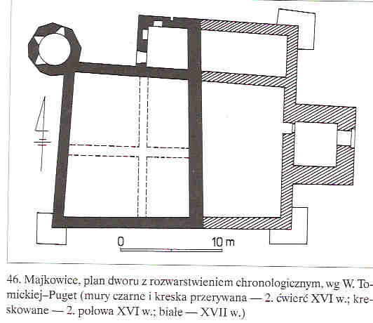 Dwór obronny w Majkowicach został wzniesiony przez Majkowskich-Nagodziców w XVI wieku, rozbudowany został w drugiej połowie tego samego wieku. Posiadał obwód murowany, mały dziedziniec i ryzalit bramny. Opuszczony został w XVIII wieku.