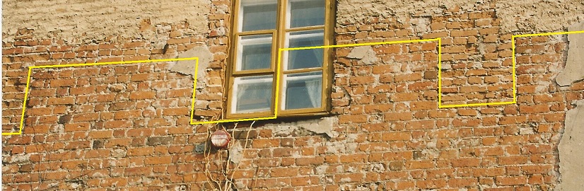 Baszta południowo-zachodnia - nr 2 na planiku Widawskiego oraz przyległe odcinki muru - widoczne kamienne podmurowanie, c.d.