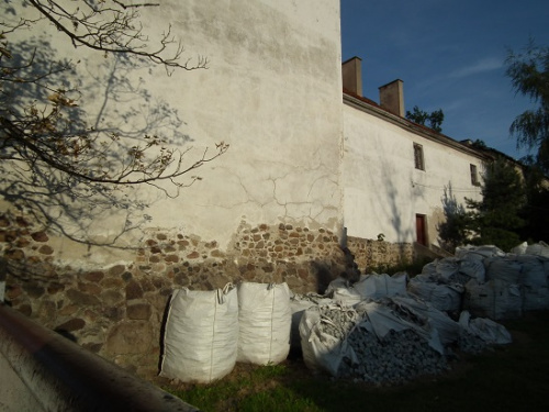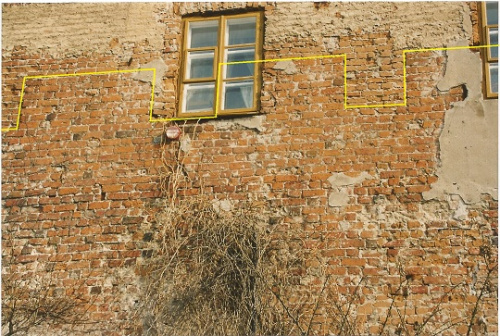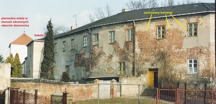 | W ścianach głównego gmachu zachowały się pozostałości dwóch baszt obronnych z XIV w. |