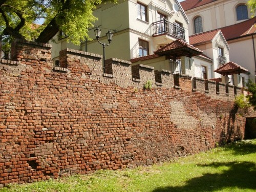 Mury miejskie w Piotrkowie zaczęto wznosić za czasów Kazimierza Wielkiego. Ich budowę zakończono dopiero w XV wieku. Ich obwód wynosił ok 1050m. Do miasta prowadziły 3 bramy: Krakowska, Sieradzka i Warszawska (Wolborska). Mury były wzmocnione basztami o nieustalonej liczbie. Obwarowania były wielokrotnie modernizowane i niszczone, zostały prawie w całości rozebrane na przełomie XVIII/XIX wieku. Do dziś najlepiej zachował się około 40m. fragment położony w okolicy klasztoru Dominikanek.