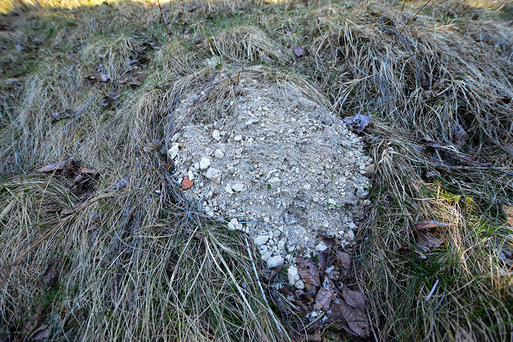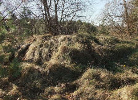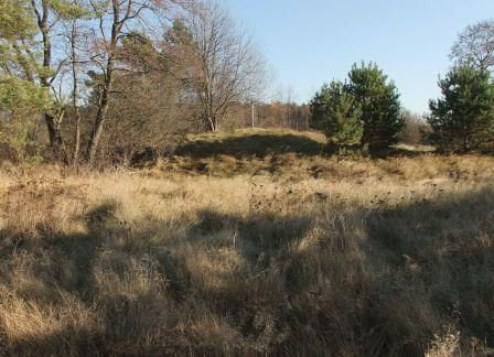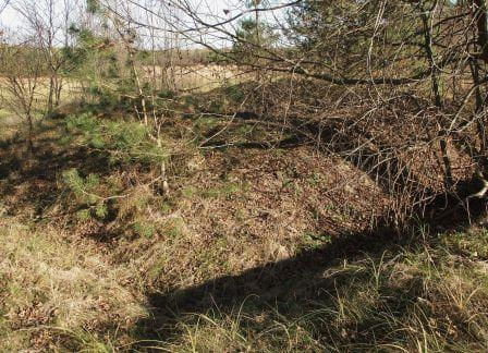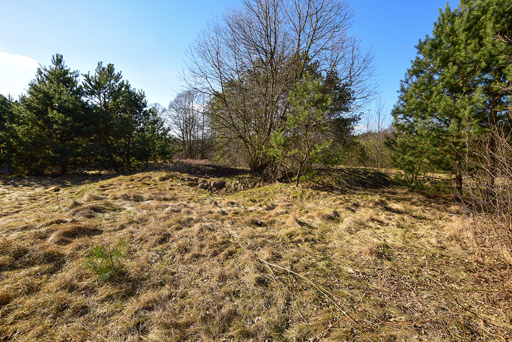 Na zdjęciach teren zamczyska, wzgórze poorane okopami oraz gruz w jednym z okopów.