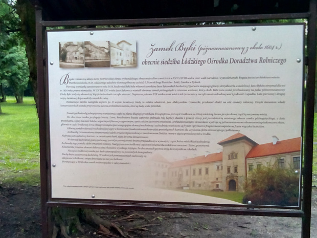 Byki - położona dziś w granicach miasta Piotrkowa dawna wieś wzmiankowana jest po raz pierwszy w źródłach pisanych z 1416 roku jako własność prywatna rodu Jaksa-Bykowskich herbu Gryf. zamek został zmieniony na renesansowy pałac. Przebudowy gotyckiego zamku dokonał wojewoda sieradzki Jan Stanisław Bykowski w 1604 roku. Nie wiadomo dziś dokładnie, jak wyglądało pierwotne założenie. Być może najstarszy element obecnego zamku stanowi kamienna, licowana cegłą baszta, której powstanie fachowcy datują na drugą połowę XVI wieku. Kolejną przebudowę zamek przeżył w XIX wieku. Obecnie zachowała się charakterystyczna bryła budowli z manierystyczną kamieniarską portalą i nietypową wieżą bramną z oryginalnymi wnętrzami.