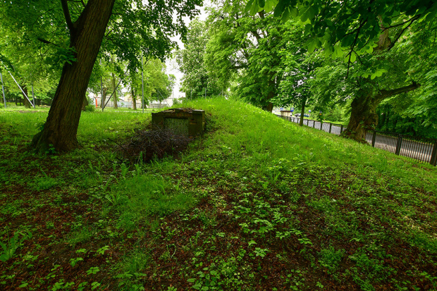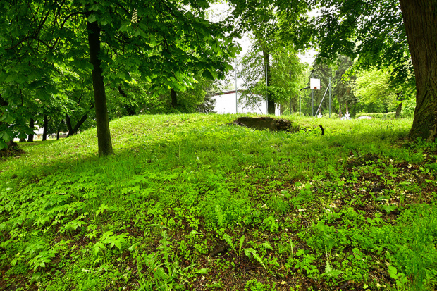 Relikty XVI-wiecznej wieży Firlejów. Na zdjęciach kopiec z zachowanymi piwnicami oraz same piwnice