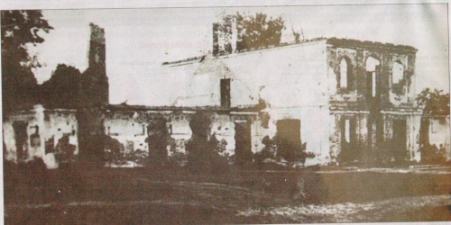 Na zamkowych fundamentach w 1880 r. wzniesiono pałac z dwoma skrzydłami po bokach wieży. pałac spalono w 1944 a ruiny rozebrano w 58r. z materiału budując szkołę..