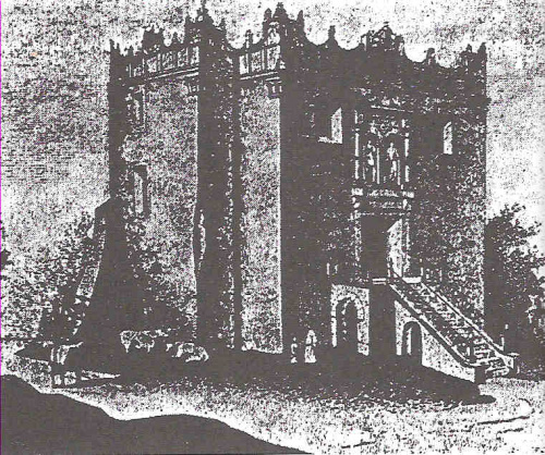 oraz widok wieży Firlejów wg Tygodnika Ilustrowanego z 1880 roku (źródło: A. Nierychlewska, Budownictwo obronnego powiatu radomskiego, str. 102)
