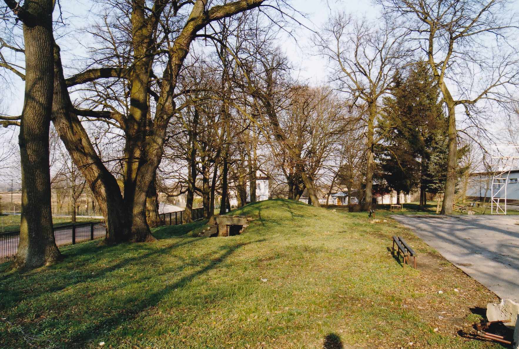 Teraz nie pamiętam dokładnie, ale będąc tam, to jeśli dobrze kojarzę, miejsce po pałacu a dworze były w innych miejscach, ten sam teren pałacowo parkowy ale lokacje budynków inne.