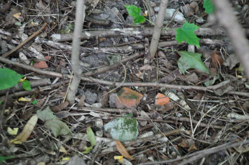 Na zdjęciu miejsce po oficynie wzniesionej w miejscu dworu obronnego, nic już nie ma jedynie trochę rumoszu, raczej na pewno po oficynie