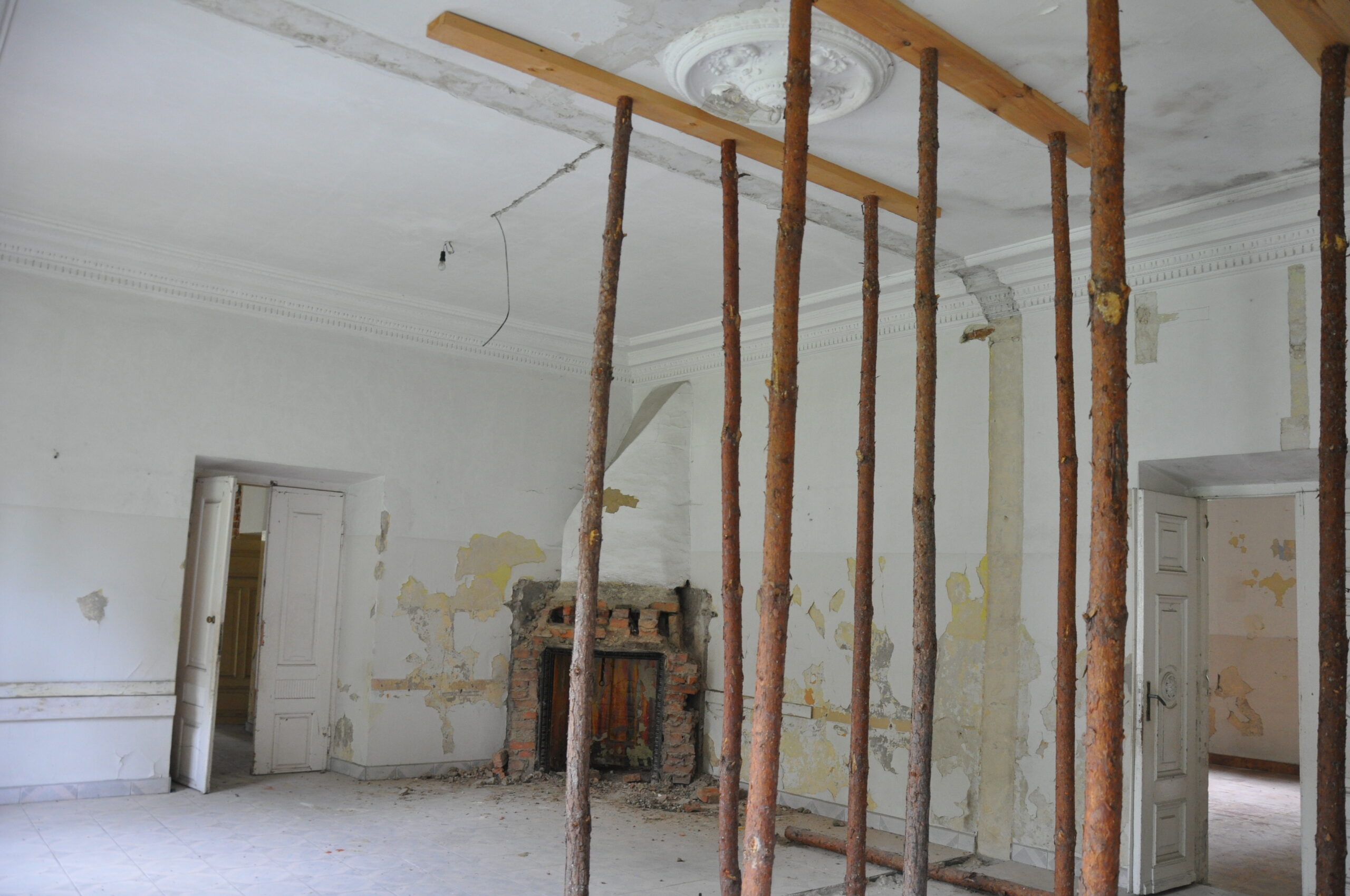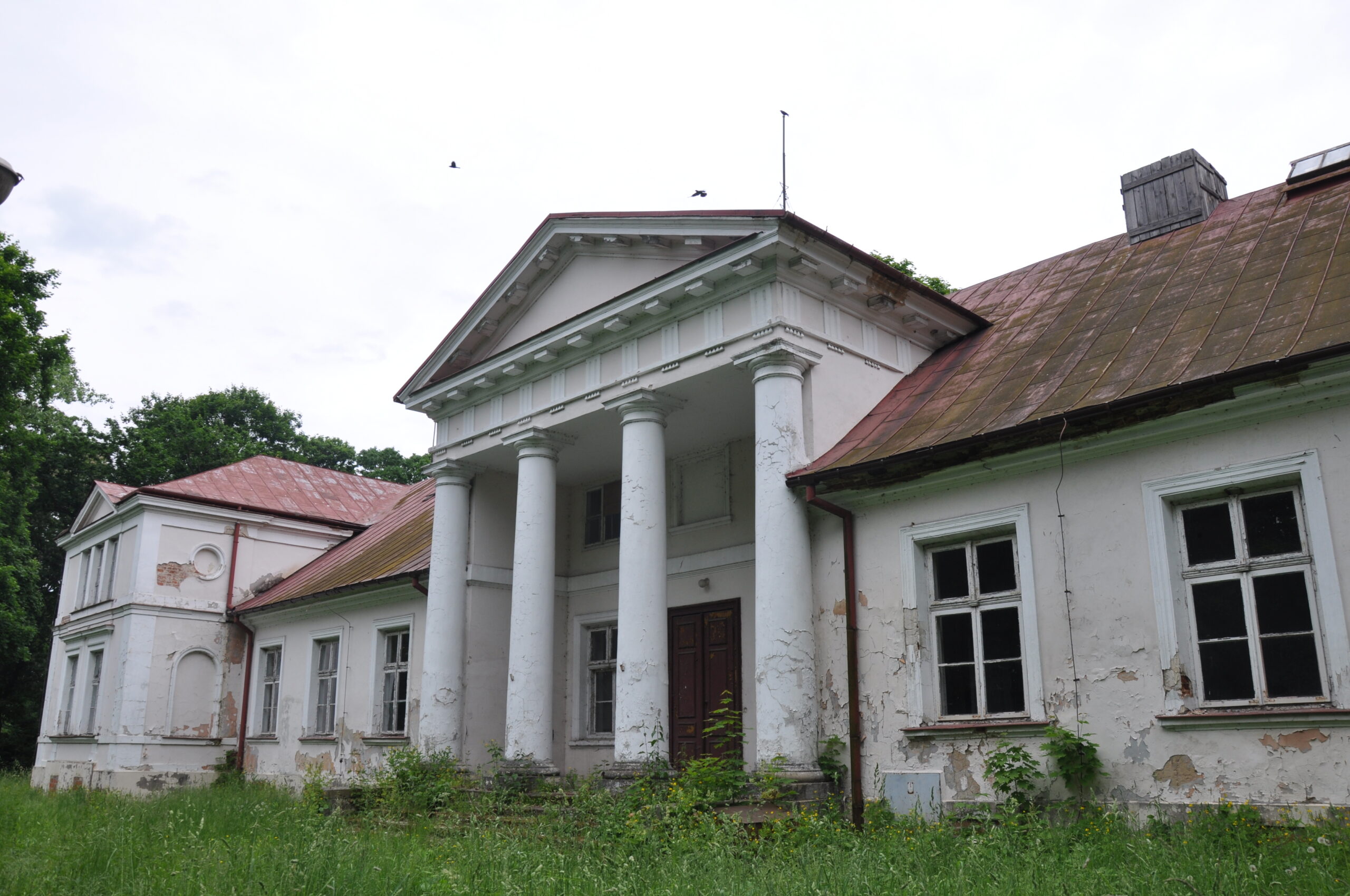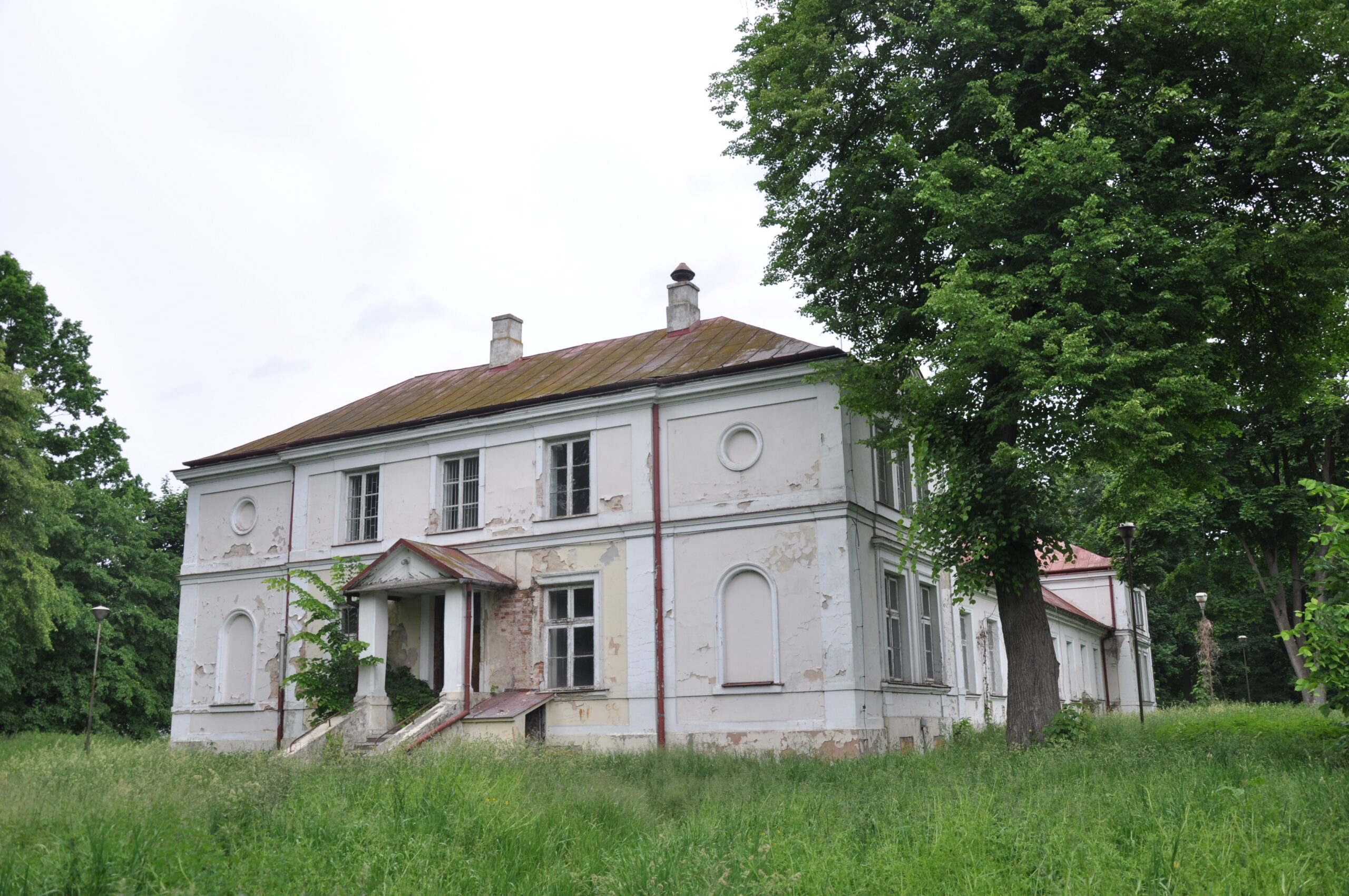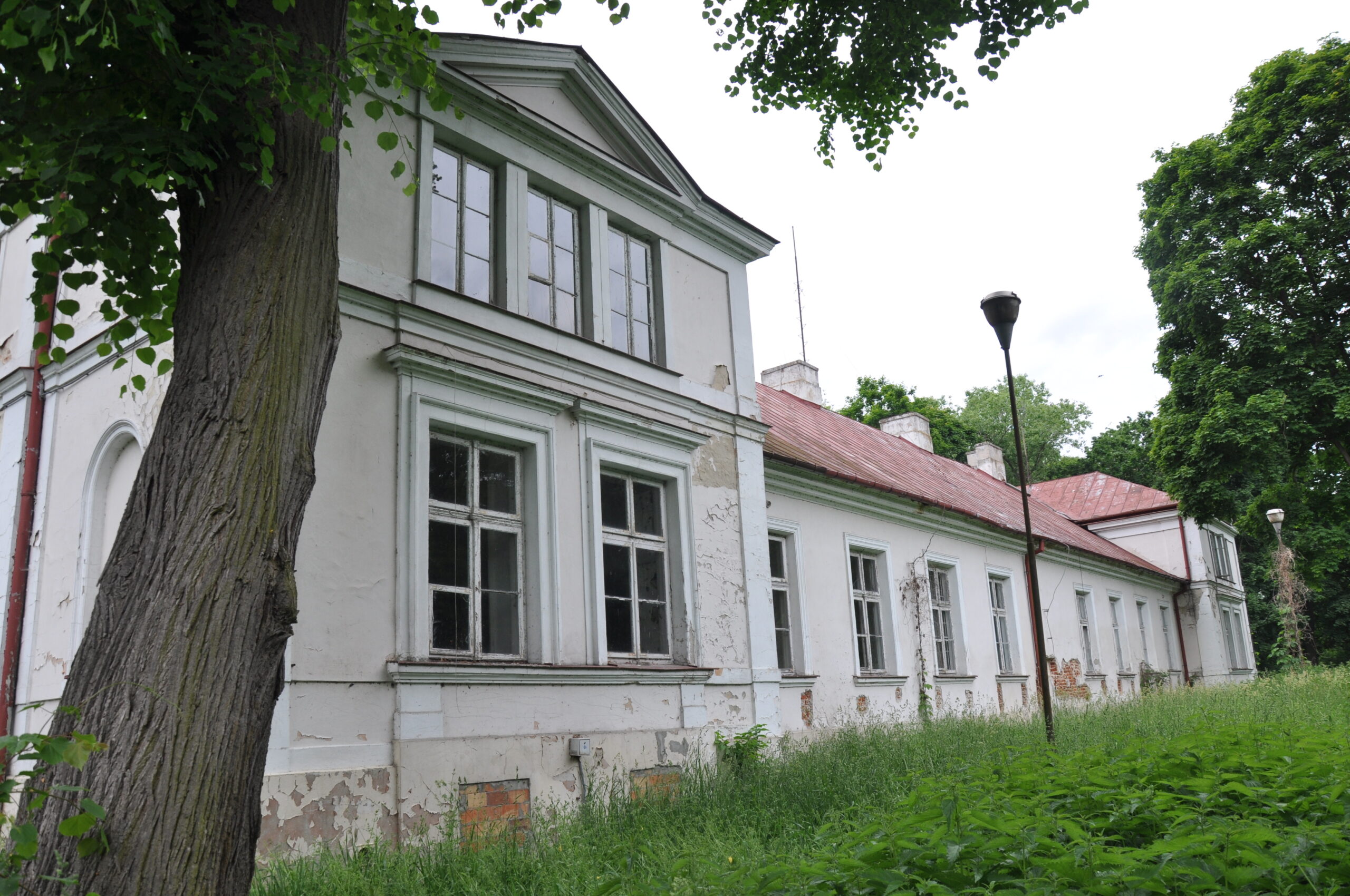Środkowa część obecnego dworu została wzniesiona na zrębach wieży mieszkalno-obronnej