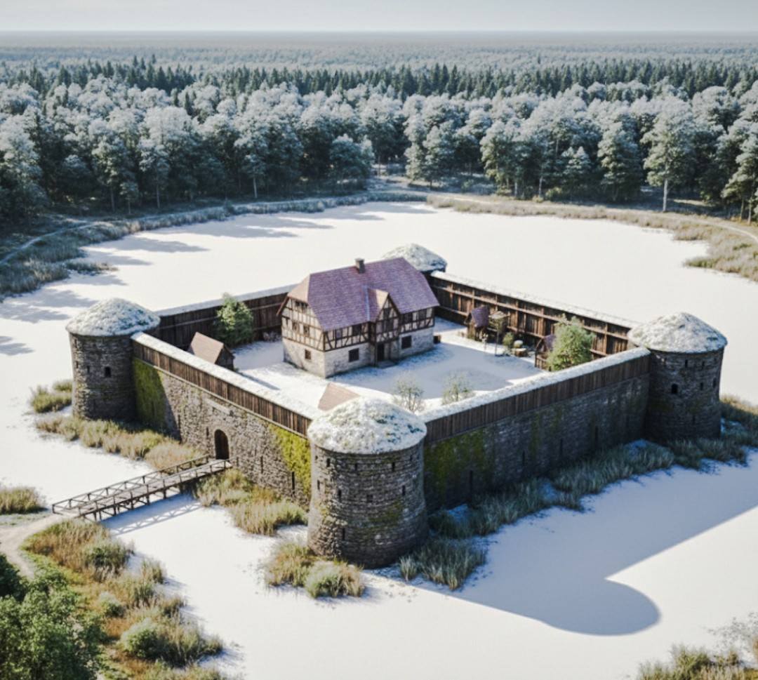 Strategiczne położenie: Wykorzystanie naturalnego wzniesienia nad stawami (często pierwotnie terenami bagiennymi) to podręcznikowy przykład średniowiecznej sztuki fortyfikacyjnej. Woda stanowiła naturalną barierę, którą trudno było sforsować ciężkiemu wojsku.