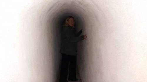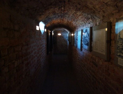 W ścianie wykopu pojawił się ceglany mur oraz dwa blisko dwumetrowej wysokości tunele. Wczoraj oglądaliśmy znalezisko. Tunele mają po ok. 1,5 metra szerokości. Można w nie wejść. Jednak po kilkunastu metrach napotykamy murek. Widać, że korytarz prowadzi dalej, ale ktoś go przegrodził ścianą. Cegły nie są zlepione cementem, ale wapnem. Wskazywałoby to, że konstrukcja pochodzi z dalekiej przeszłości. Wapna jako spoiwa używano w Polsce od średniowiecza do początków XX wieku.