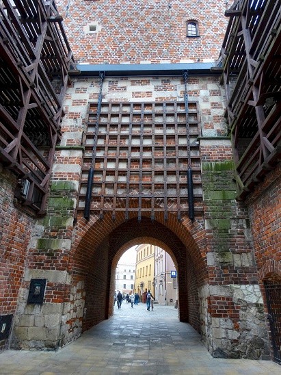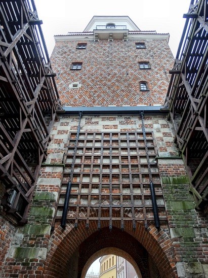- Górna część Bramy Krakowskiej widziana z zamku.