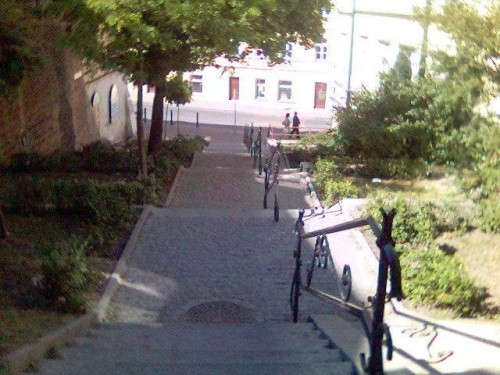 Dawny wąwóz i jednocześnie miejsce odprowadzania ścieków za mury miasta z Placu Rybnego. Obecnie zejście z Placu Rybnego do ulicy Kowalskiej. Po prawej widoczne fragmenty murów miejskich. Nr 8 na planie.