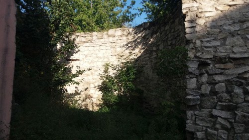 I najdłuższy odcinek muru - około 200-250 metrów. Niestety miejscami zabudowany i zarośnięty krzewami.