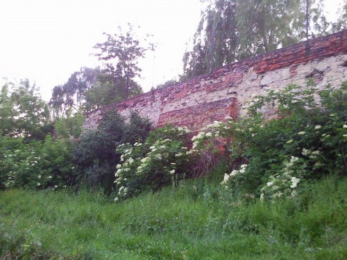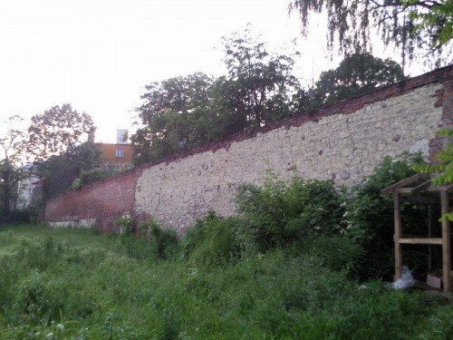 Kilkuset metrowy odcinek muru od strony wewnętrznej. Podziękowania dla Sióstr Urszulanek za możliwość wejścia do ogrodu.