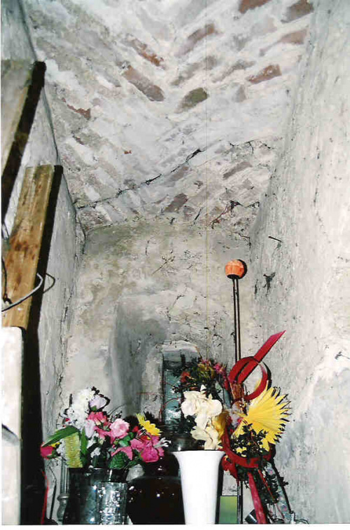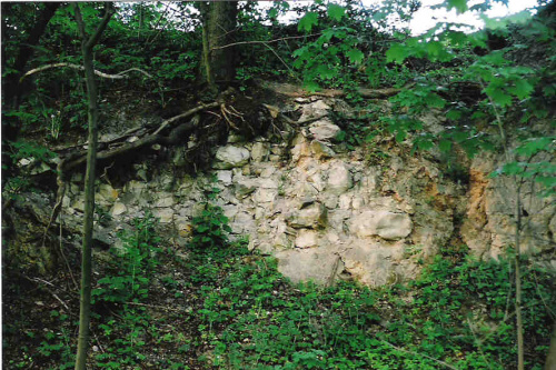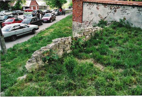 Fragment kamiennego muru niewiadomego pochodzenia obok Kościoła. Na mur obronny raczej sie nie nadaje ze względu na zbyt małą grubość. W widocznym w tle jasnym budynku (kaplica z figurą M.B.) jest małe muzeum.