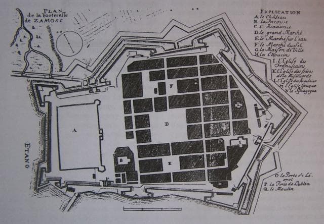 Obiekt w Zamościu jest moim zdaniem niesłusznie pomijany w wykazach architektury obronnej gdyż pierwotna rezydencja wzniesiona przez Jana Zamoyskiego w latach 1579 - 86 była oddzielona od miasta własnymi obwarowaniami bastejowymi z bramą od frontu na osi założenia. Mur otaczający ten renesansowy zamek/pałac był najwcześniejszym elementem fortyfikacji w mieście. Obiekt zatracił swój charakter już podczas pożaru w 1658 roku oraz późniejszych prac na przestrzeni wieków.