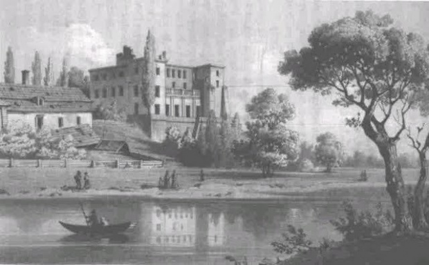 Zamek od strony Wieprzu, 1862r oraz ogólny plan całego założenia (źródło:Domy Pańskie na Lubelszczyźnie)