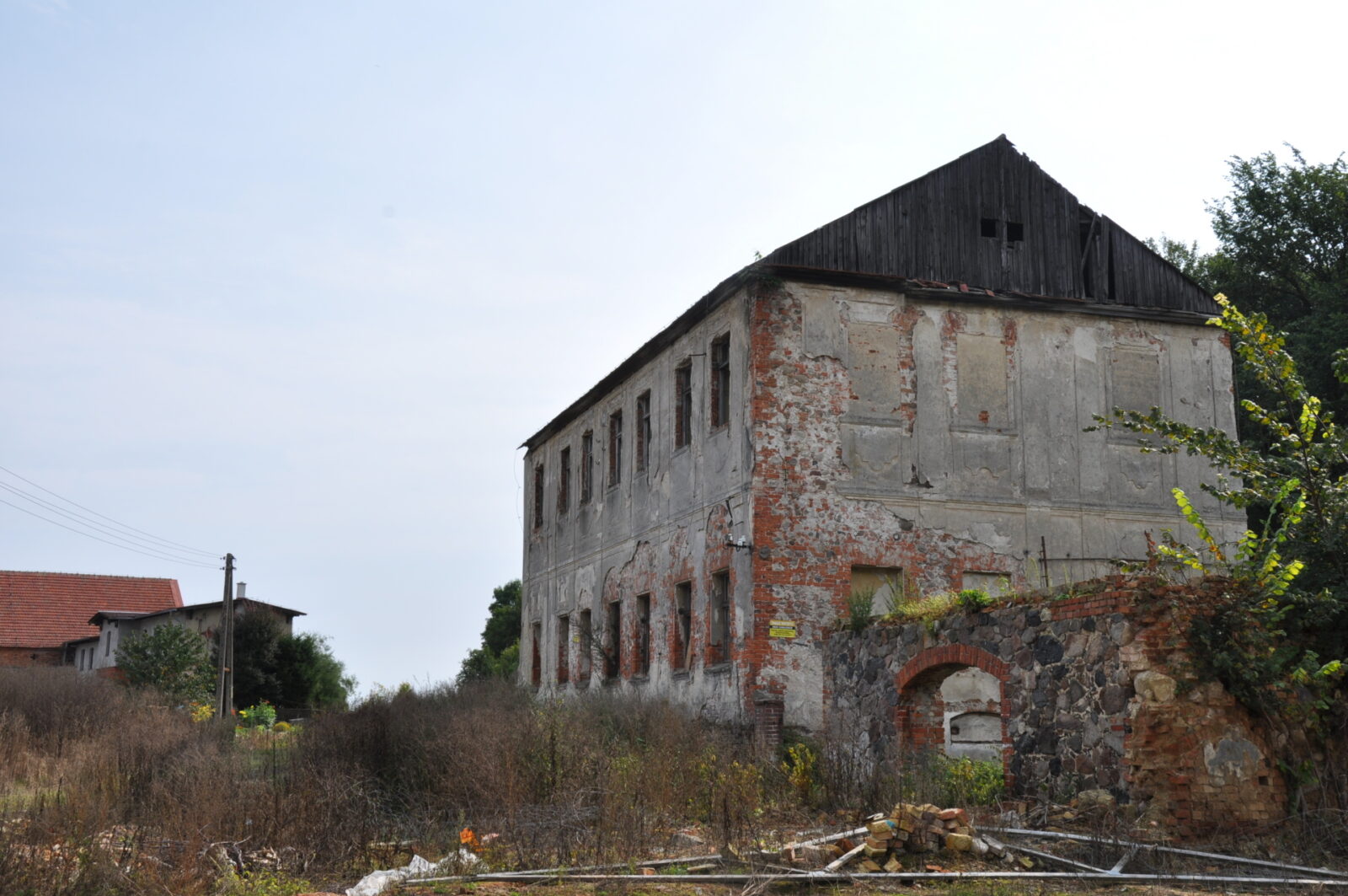Obiekt położony jest na obecnym terenie dworskim. Renesansowy XVI-wieczny dwór powstał na planie prostokąta z oszkarpowanymi narożami, prawdopodobnie w miejscu jeszcze starszej siedziby. W XVIII wieku obiekt przekształcono w barokową rezydencję. Za fundatorów pierwotnego obiektu uważa się rodzinę Rackel z II połowy XV wieku. Obecnie dwór jest w stanie ruiny.