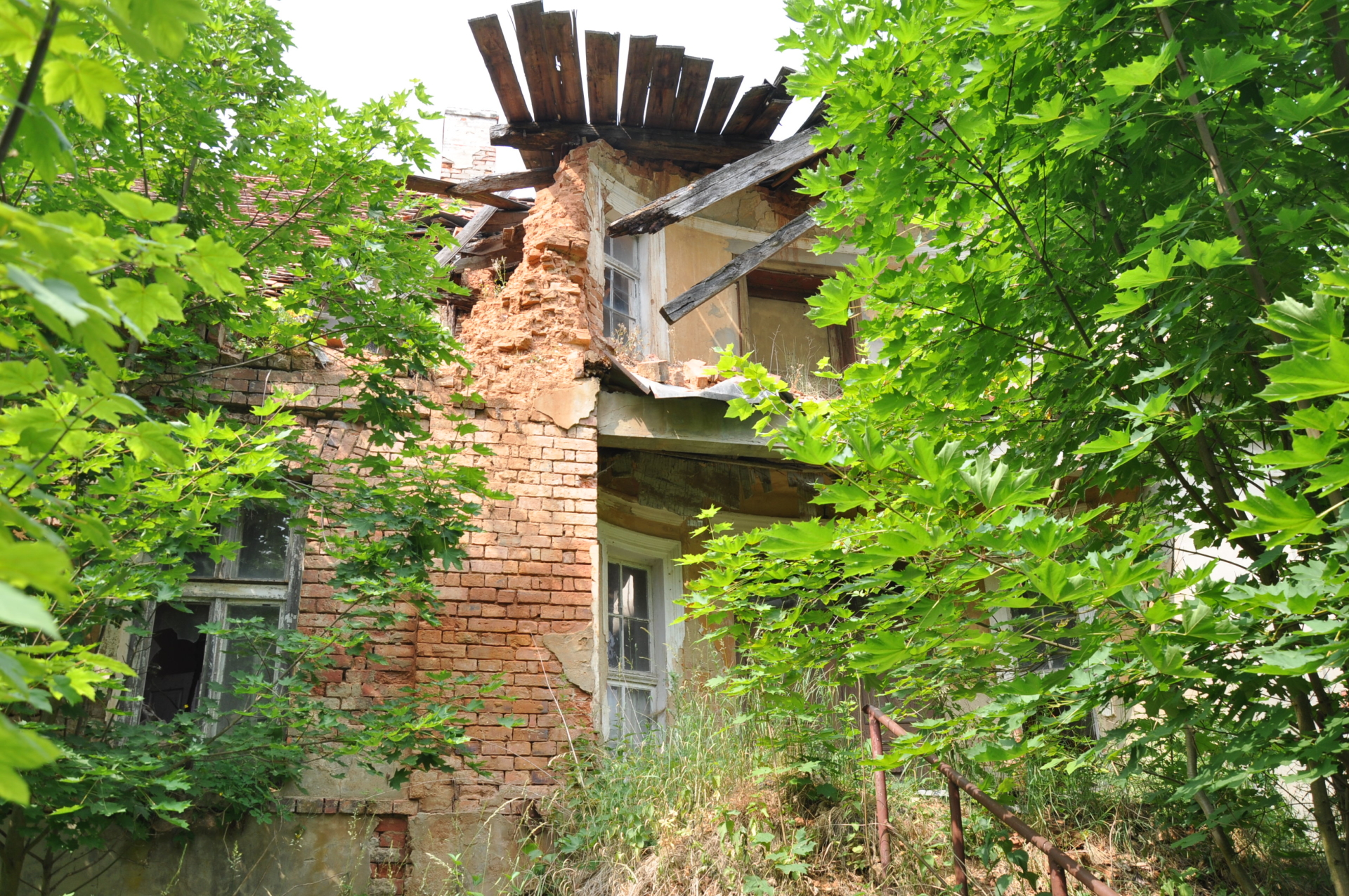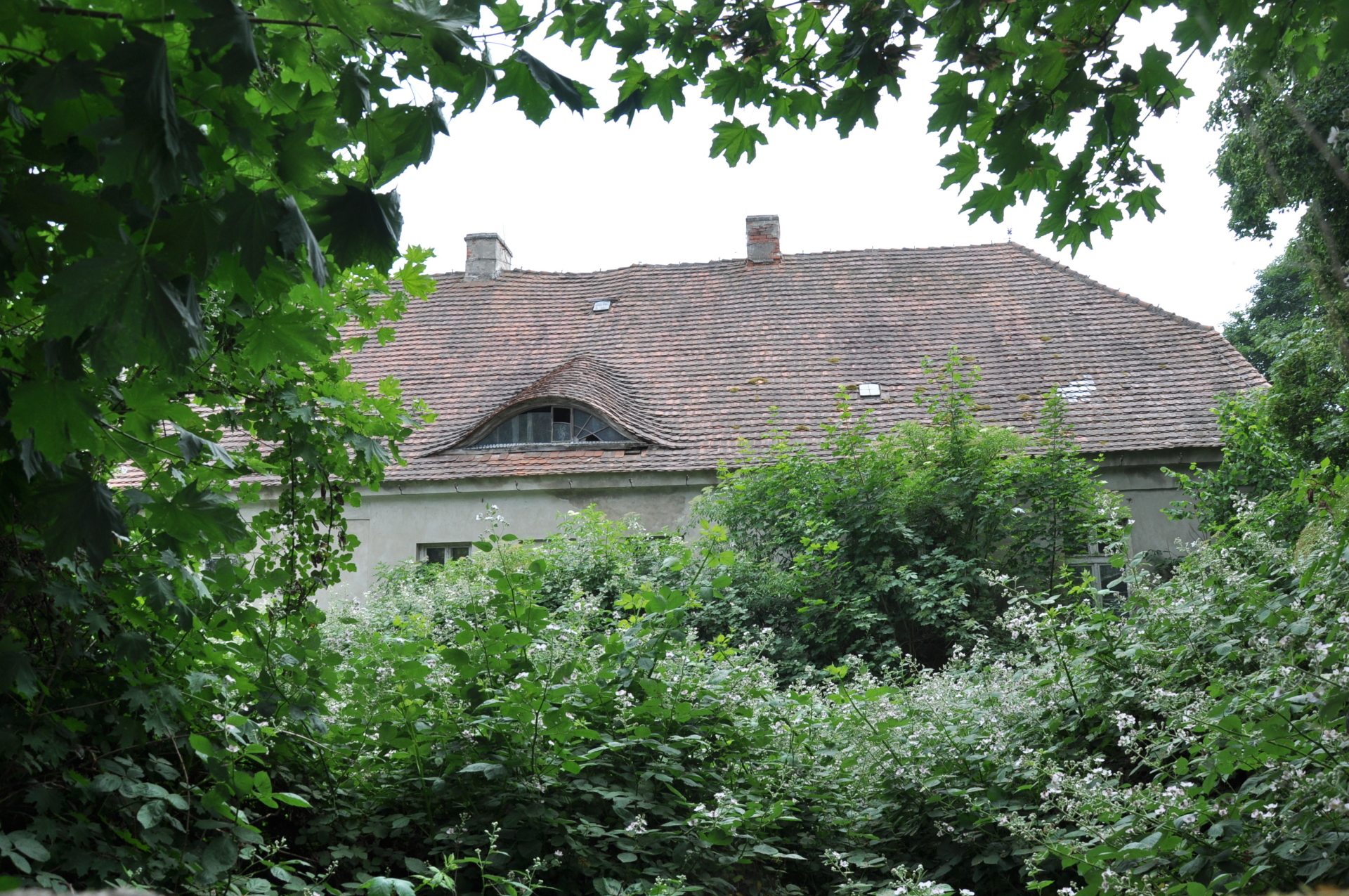 W lato całkowicie niewidoczny przez ścianę zieleni