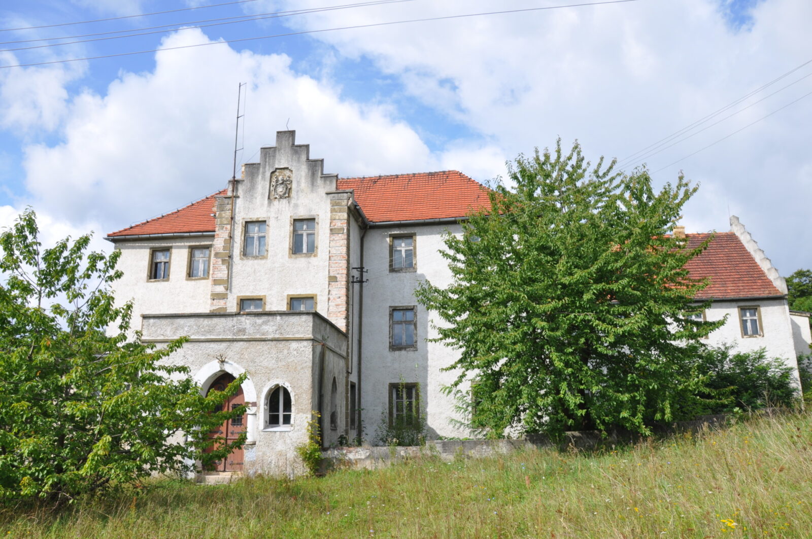 We wsi znajduje się znacznie przebudowany renesansowy dwór obronny z XVII wieku, wzniesiony w 1631-1684 roku przez Johanna Adolfa von Dallwitza. Dwór był wielokrotnie przebudowywany, zwłaszcza w drugiej połowie XIX stulecia. Nadano wtedy obiektowi neogotyckie i klasycystyczne cechy. W najstarszej części pomieszczeń parterowych zachowały się sklepienia krzyżowe i kolebkowe z lunetami.