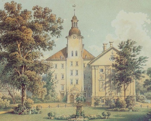 Już od wczesnego średniowiecza istniał tu gród strzegący przeprawy przez rzekę Czarną i bagna. Pierwszą data potwierdzoną źródłowo jest rok 1356r., kiedy wieś staje się lennem rycerzy v. Kottewicz. Z nimi prawdopodobnie należy wiązać siedzibę, o której wspominał napis nad portalem pałacu znany ze źródeł mówiący iż Krzysztof Schellendorf w 1626r."buduje na nowo" siedzibę. Nie wyklucza się, iż nowa rezydencja powstała w miejscu pierwotnej. Położenie między dwoma ramionami rzeki Czarnej spełniało warunki obronności pożądane w tym czasie. Wzniesiono renesansową czterokondygnacyjną budowlę na planie zbliżonym do kwadratu z wieżą i sienią przelotową na osi. Gładkie, bez podziału elewacje podkreślono portalem z kartuszem herbowym i wspomnianym napisem. Drugi etap rozbudowy wiąże się z rodem Promnitzów, należący do najznakomitszych rodów Dolnego Śląska i Łużyc. Na początku XVIII w. Baltazar Fryderyk Promnitz zlecił prawdopodobnie włoskiemu architektowi Juliuszowi Simonettiemu rozbudowę rezydencji. W XIX wieku do dworu dobudowano wieżę.