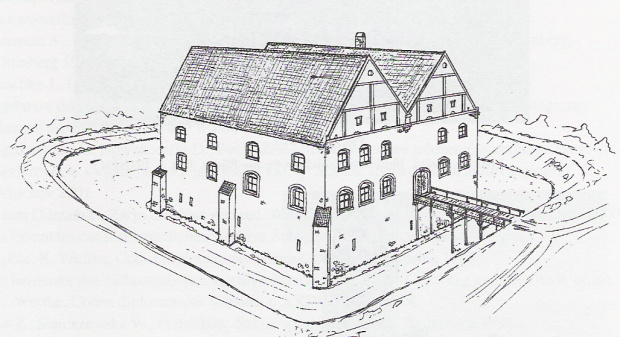 dwór na XIX-wiecznej rycinie F.Schrollera