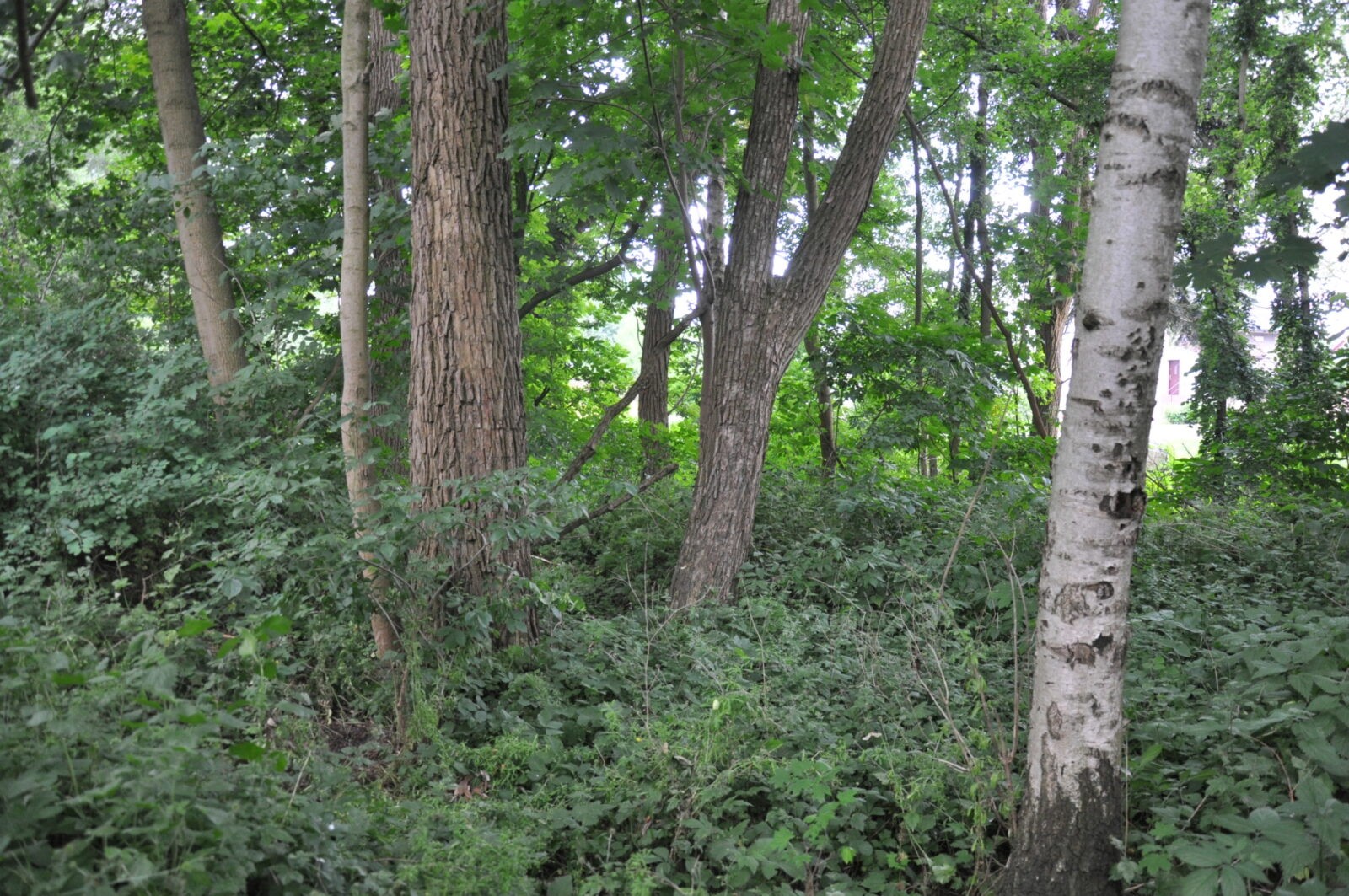 stojąc plecami do wieży kościoła w stronę strumyka gródek znajduje się na wprost zaraz za ciekiem