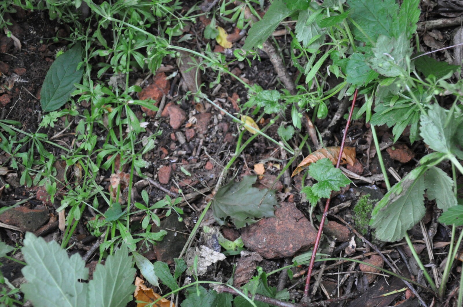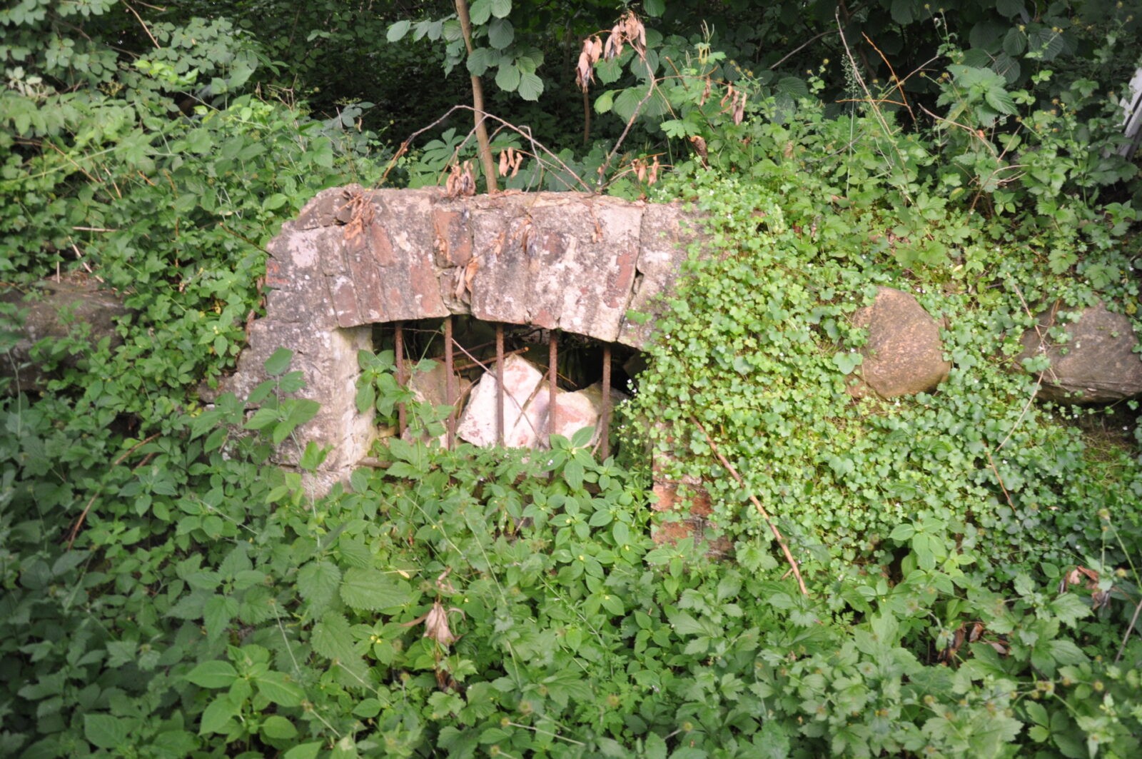 jakaś piwniczka na zboczu kopca, wokół niej ledwie widoczne kamulce