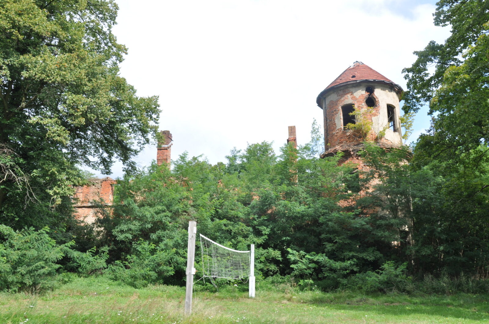We wsi znajdują się ruiny dworu wzniesionego w XV stuleciu i przebudowanego w XVIII i XX wieku. Była to dwukondygnacyjna budowla murowana z kamienia i cegły, założona na planie prostokąta z dwiema trzykondygnacyjnymi wieżami nakrytymi dachami namiotowymi w narożnikach elewacji zachodniej i dobudówką. Obiekt popadł w ruinę po 1945 roku. Niedaleko dworu znajdują się dwa barokowe pawilony.