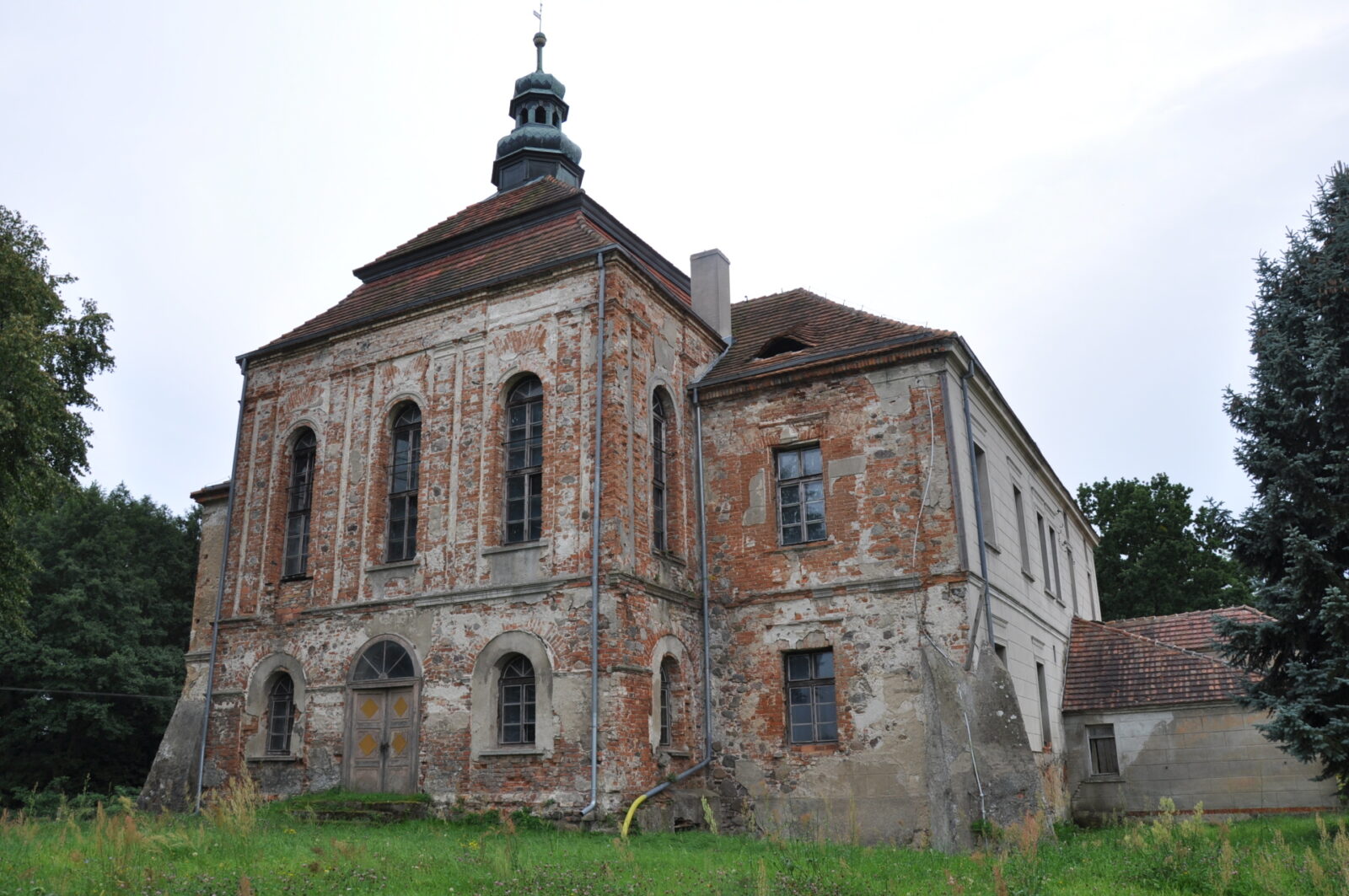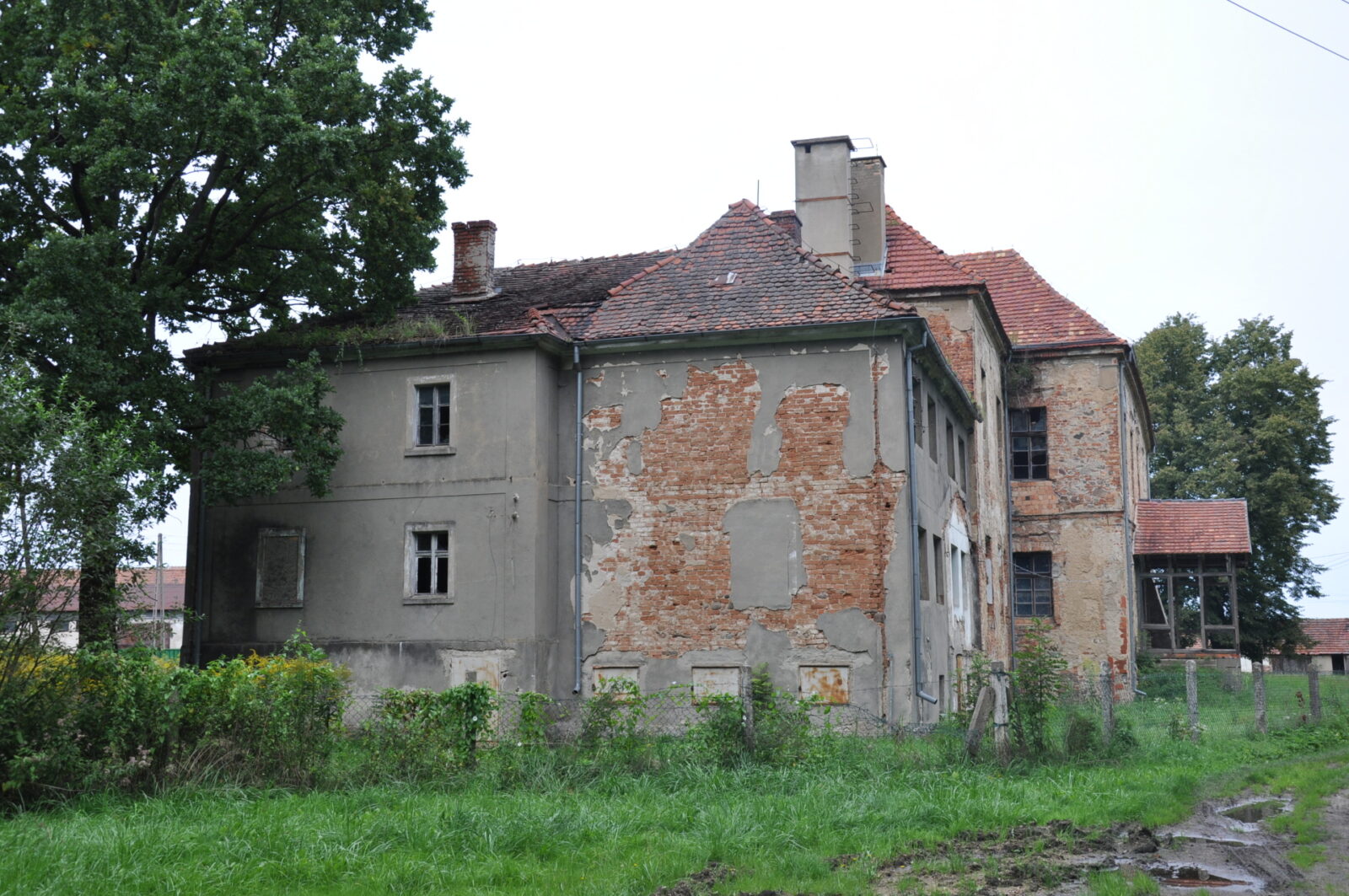 W południowej części wsi znajduje się dwór obronny z XVI wieku zbudowany na planie kwadratu w o boku długości 23m. Początkowo była to budowla obronna. W pierwsze fazie budowy wzniesiono mury obwodowe z cegły i kamienia na zaprawie wapiennej oraz podpiwniczone lewe skrzydło wschodnie o wymiarach 6,6mx21m. W drugim etapie realizacji pierwszej fazy budowy, zbudowano niepodpiwniczone skrzydło zachodnie o szerokości 5,4m. Utworzone w ten sposób założenie połączono od północy i południa murami kurtynowymi tworząc dwuskrzydłowy dwór z niewielkim budynkiem centralnym. Główny wjazd do dworu znajdował się od strony południowej. Pierwotne założenie otaczała mokra fosa widoczna jeszcze na rycinie Wernera. Dwór został następnie przebudowany w 1750 roku i na początku XIX wieku. W XVIII wieku zrezygnowano z obronnego charakteru na rzecz form bardziej reprezentacyjnych. Zmieniono wówczas konstrukcję dachu. Obecnie jest to mieszanka stylu renesansowego i barokowego. Jego fundatorami była rodzina Knobelsdorfów. Dwór został postawiony w miejscu bliżej nieokreślonej siedziby Knobelsdorfów z przełomu XIV/XV wieku.
