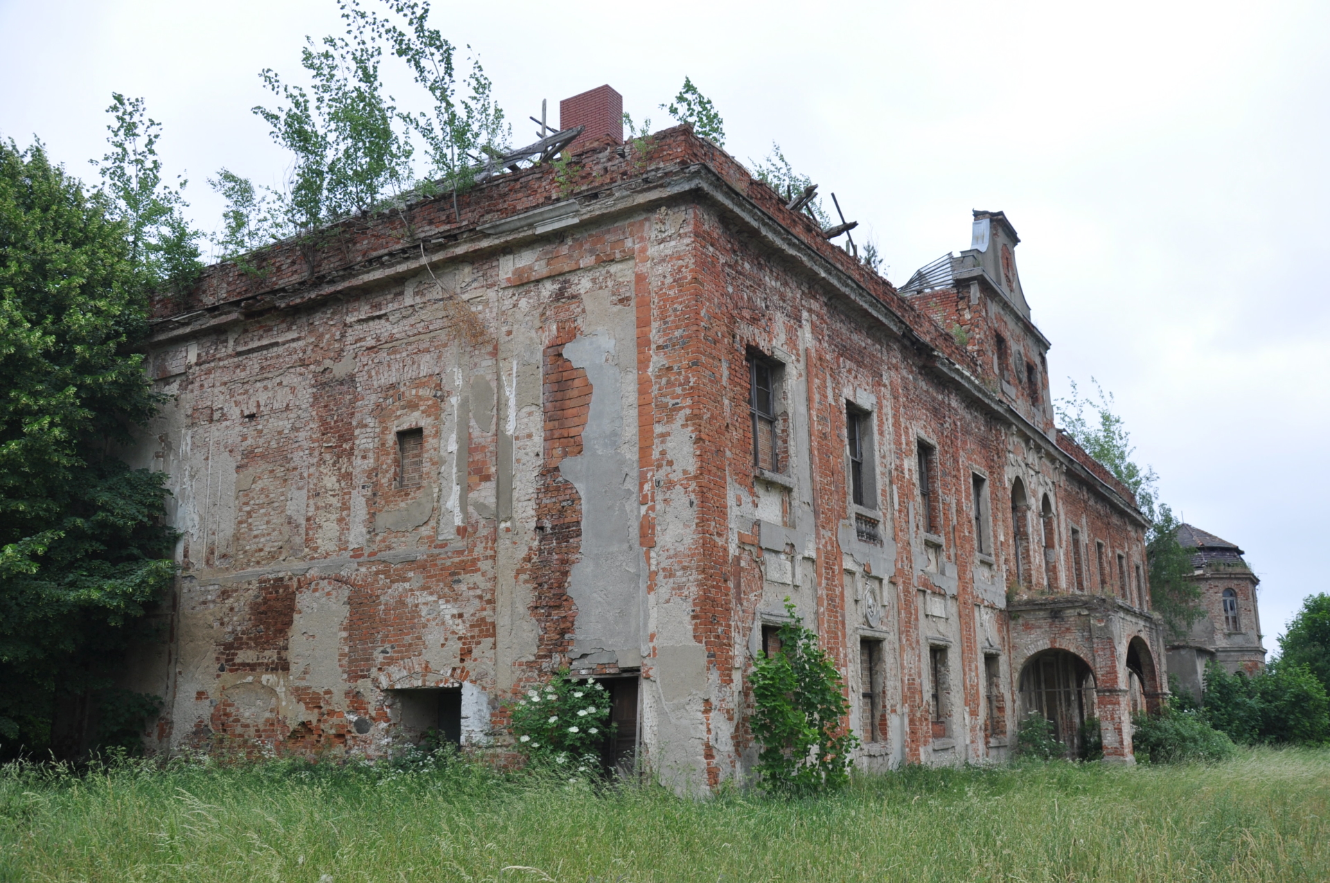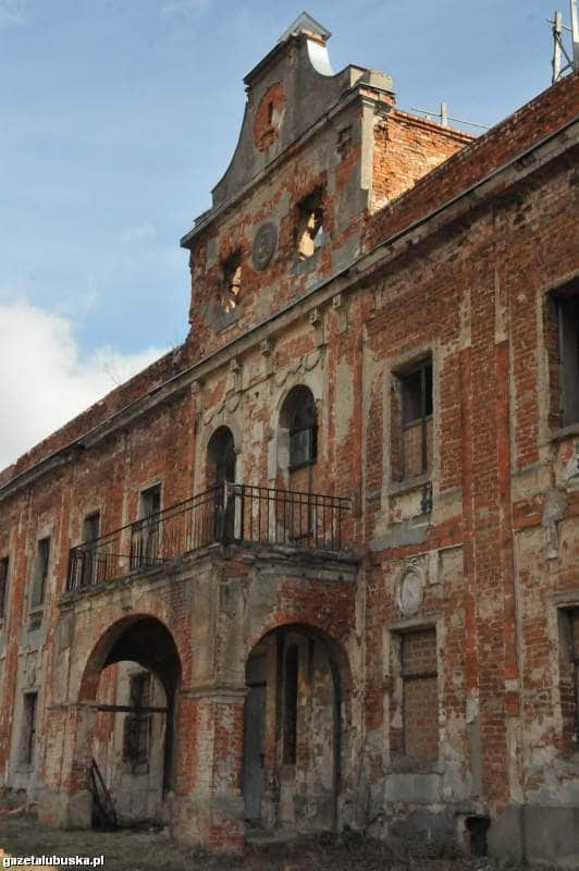 Elewacja pałacu w Suchej Dolnej, zdjęcie pochodzi z artykułu Na naszych oczach rozpadło się tyle wspaniałych, zabytkowych budowli, który ukazał się w Gazecie Lubuskiej 6 kwietnia 2009 roku, autor zdjęcia Dariusz Chajewski