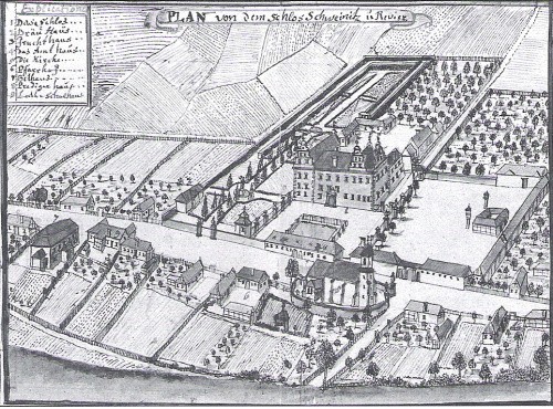 dwór i część wsi w II połowie XVIII wieku na rysunku Webera