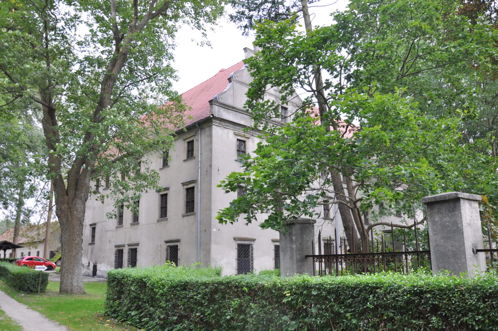 W pierwszej połowie XVI wieku w wyniku rozbudowy wieży rycerskiej wzniesiono dwór, według projektu włoskiego architekta Alberto Antoniego z Urbino. Budynek otoczony fosą był murowany, piętrowy, wuskrzydłowy. W XIX i XX wieku dwór był kilkakrotnie przebudowywany. Do dzisiaj zachował się renesansowy portal wejściowy zwieńczony trójkątnym przyczółkiem. Fundatorami dworu byli Kietliczowie. Obecnie jest tam siedziba Muzeum Archeologicznego Środkowego Nadodrza.